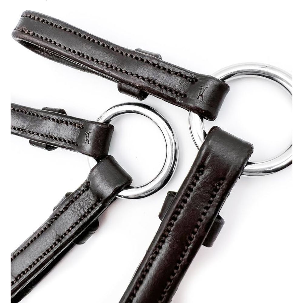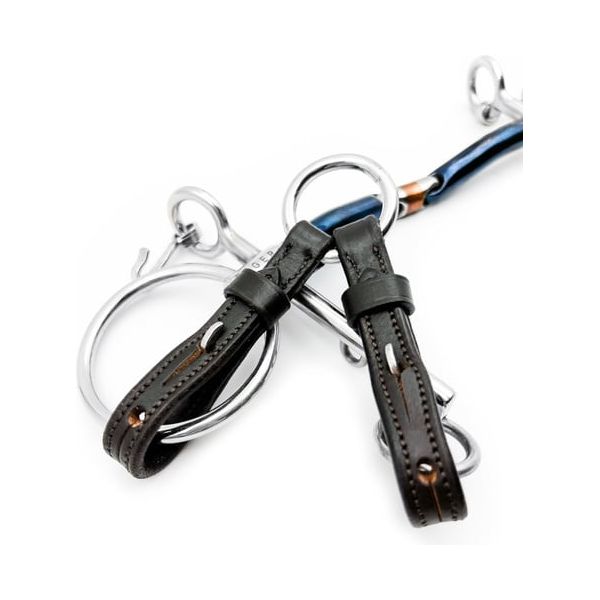 With Fager adjustable delta straps, you can adjust the strength without having to use two reins. By shortening the strap that goes to the lower ring you get more leverage and by shortening the strap to the upper part of the Pelham, you will get less leverage.