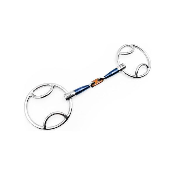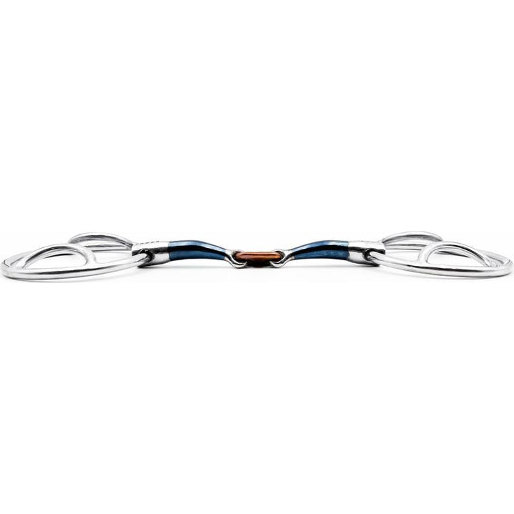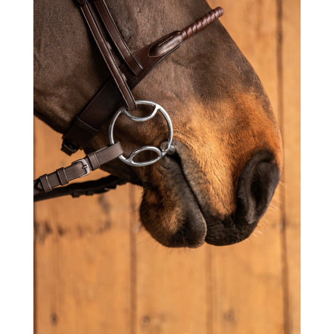 A Beval bit has a similar effect to a 2 ½ & 3 Ring Snaffle, but has a softer effect and less leverage. Gives a flexible, soft feeling in the hand.
