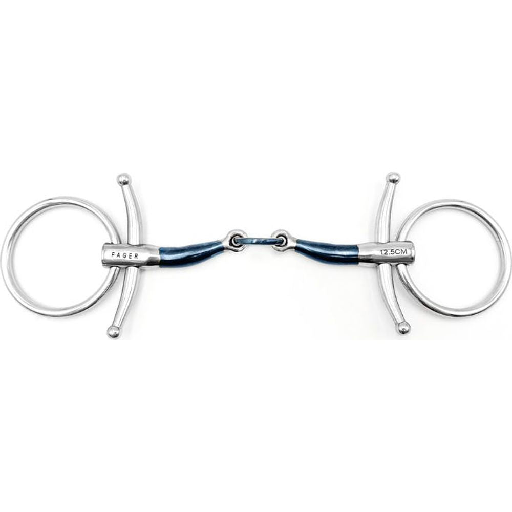 Baby Fulmer is a registered design by Fager. This sidepiece will give you a mix between the loose and fixed rings. The Fulmers will lay close to the horse’s side, helps with steering, and keep the mouthpiece steady. The loose rings are placed further away from the mouth corners, and this will put the pressure further down and inwards, encourage the horse to lift in the front, come back to your hand, and avoid a stiff feeling towards the bit. It is a very comfortable choice for many horses and a great start for a youngster. Baby Fulmer is FEI approve, even for dressage.