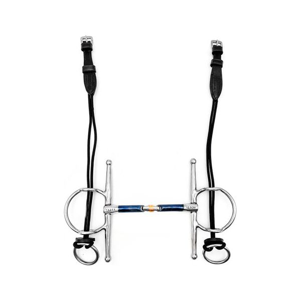 When using a gag rein through the rings, we recommend using a second rein connected to the snaffle ring as well.