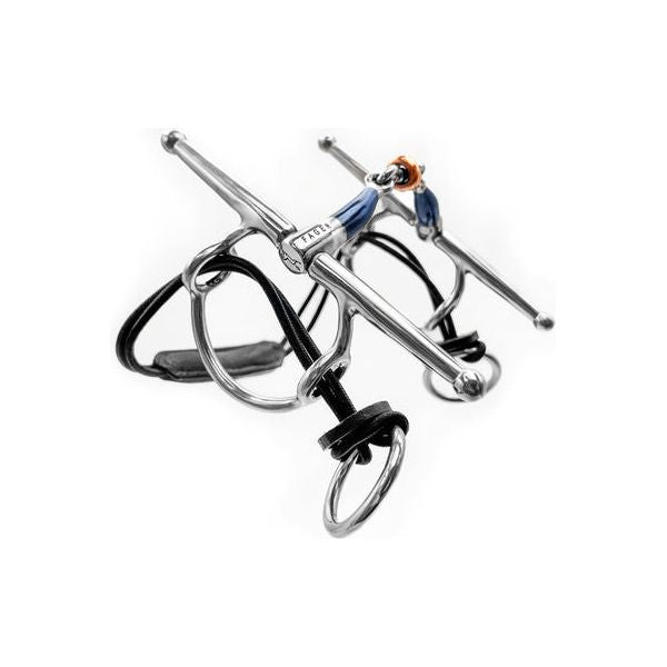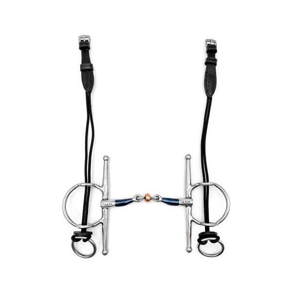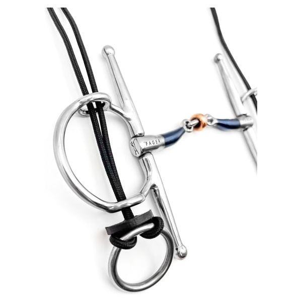 When using a gag rein through the rings, we recommend using a second rein connected to the snaffle ring as well.