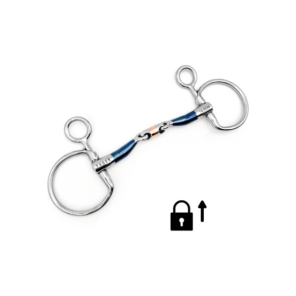 Mattias is a double-jointed sweet iron bit with a special lockup function. The mouthpiece has a tongue relief but locks upwards, which can be good for horses with a low palate and sensitive bars who still prefers a tongue relief.