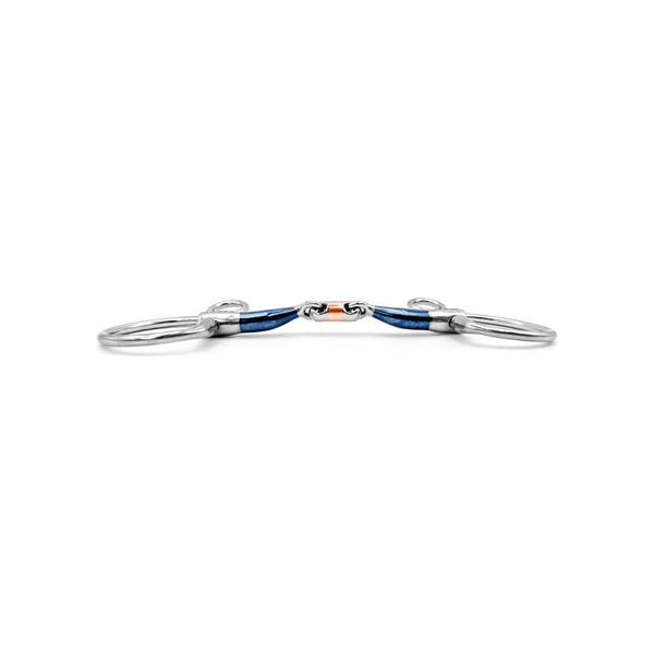The joints are rotated away from the tongue, which gives a more gentle, smooth pressure on the tongue. This can be good for horses that can overreact when you take the reins and need to keep the consistent contact through every movement. The sweet taste together with the stability makes the horse seek a stable contact with the bit.