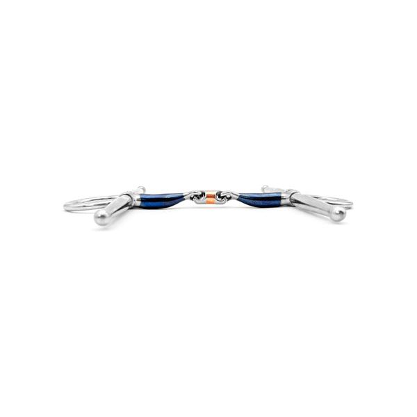 The joints are rotated away from the tongue, which gives a more gentle, smooth pressure on the tongue. This can be good for horses that can overreact when you take the reins and need to keep the consistent contact through every movement. The sweet taste together with the stability makes the horse seek a stable contact with the bit.