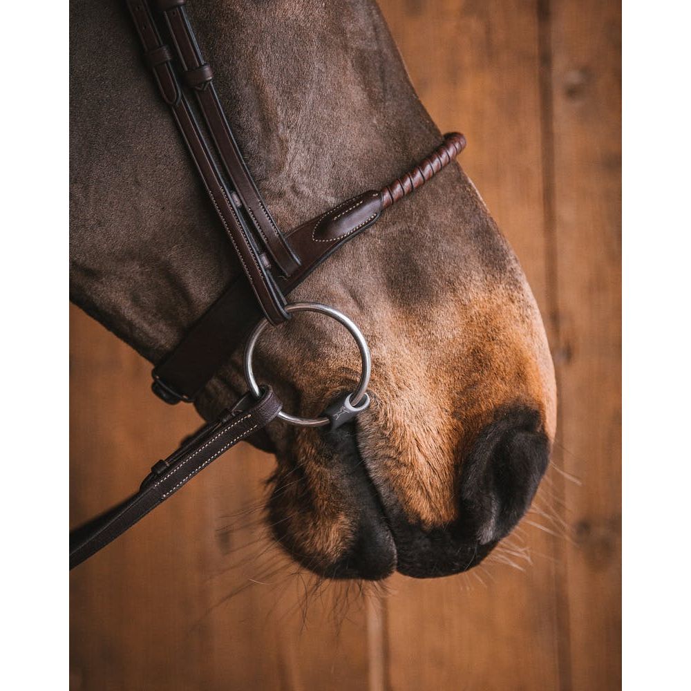 When fitted this way, Frida’s mouthpiece will lock backwards against the throat, with no lock in front. The plate will be angled against the tongue and create more pressure. This bit is perfect for the strong, fussy, and stubborn horse.