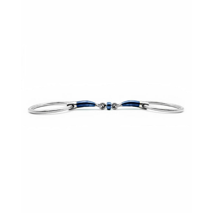 Jack is a double-jointed Sweet iron bit incorporating fixed rings /eggbutt side pieces.