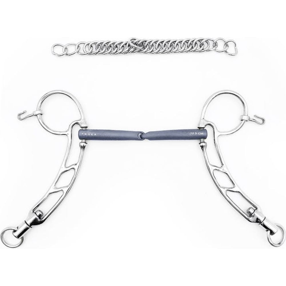 The Shank design is split into sections to enable an second pair of reins to be used. This innovative twist of design provides an extremely versatile training tool; allowing you to increase or decrease leverage as needed, whilst training with the actual bit that you will use when competing.