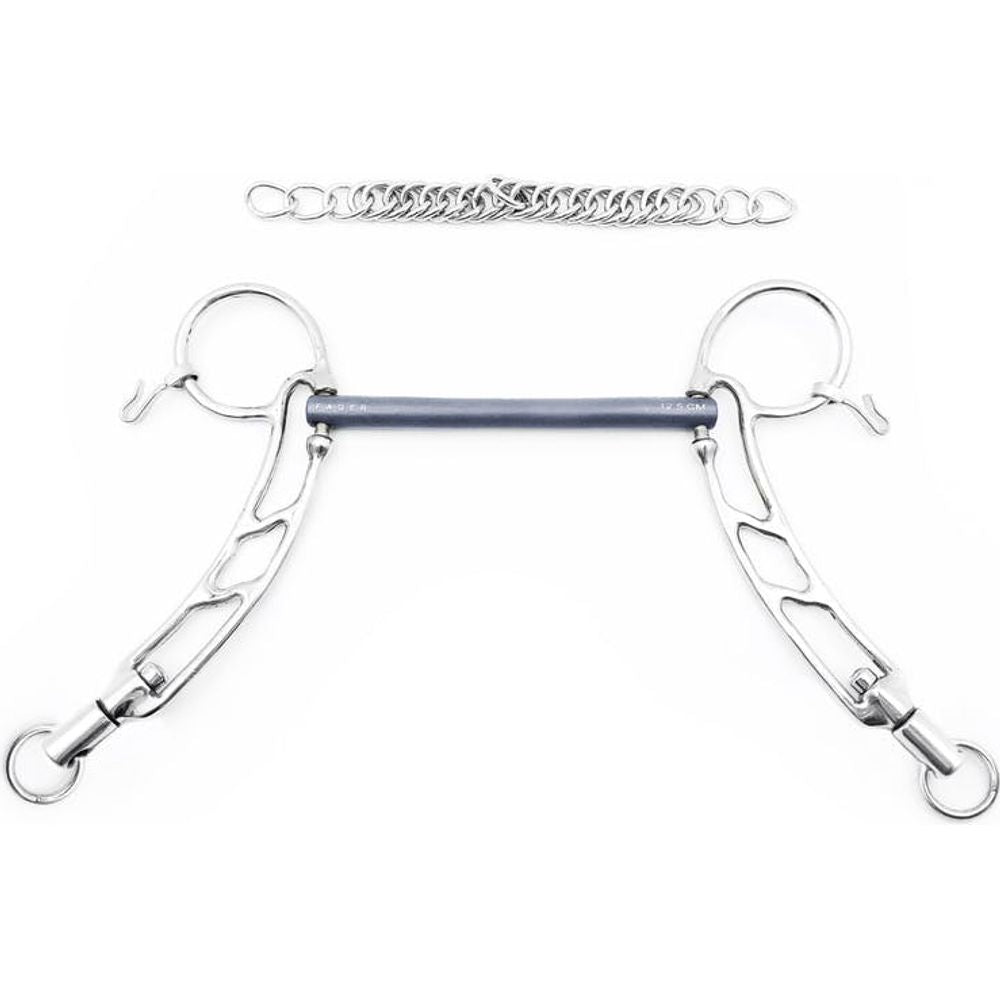 The Shank design is split into sections to enable an second pair of reins to be used. This innovative twist of design provides an extremely versatile training tool; allowing you to increase or decrease leverage as needed, whilst training with the actual bit that you will use when competing.