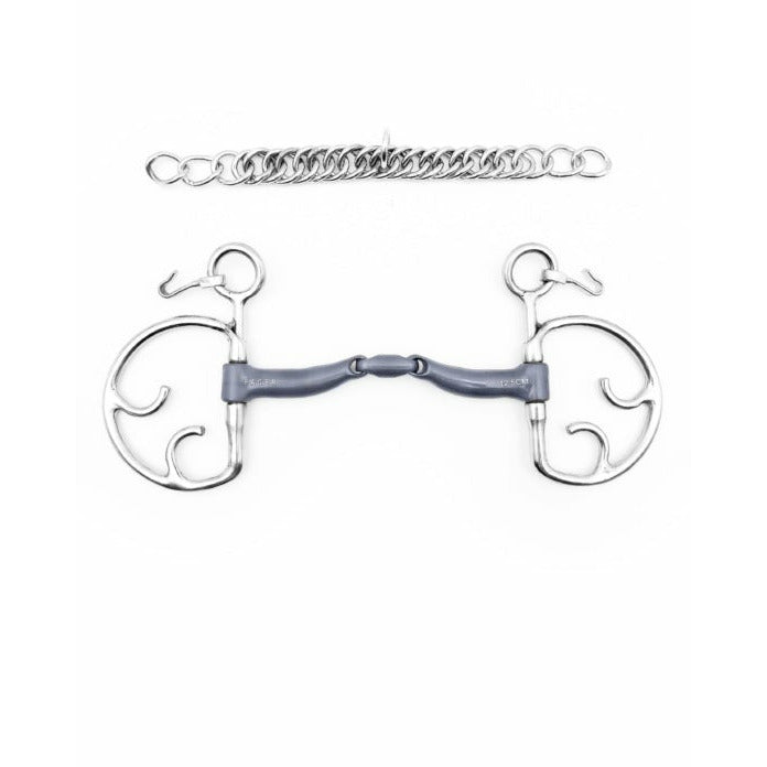 Maria’s joints are designed to never press against the sides of the palate or create uneven pressure over the bars. It is an extremely comfortable bit which contours naturally around the tongue, relieving the bars from constant pressure.