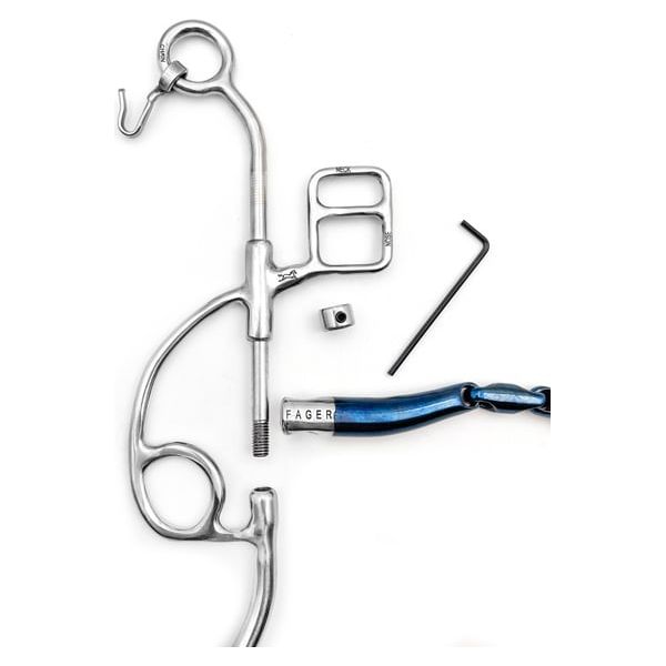 The Otto Hackamore Combination bit is a special design. You can change the mouthpieces and nosepieces from Fager at home. Make your perfect bit with Otto!