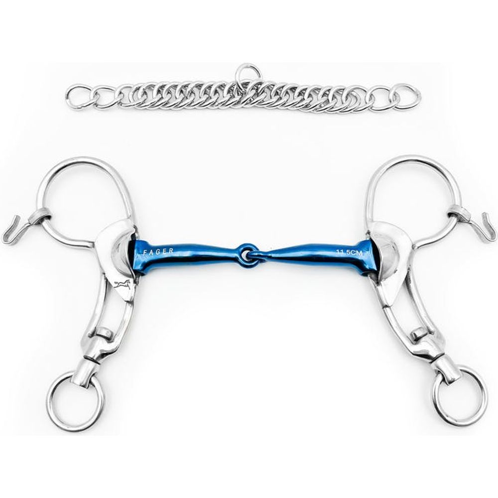 ”I was looking for a competition bit for me and my students that provides a precise connection to the horse. The bit should be soft in the mouth and comfortable to handle. I used to compete in a baby Pelham, but many of my students pointed out that the double reins can be complicated to ride with. Together with Fager bits, we were able to develop a bit with really short shanks that are used with single reins. We also decided on a titanium mouthpiece that my horses enjoy. The lightness of the Titanium stops them from being heavy on the hand.
