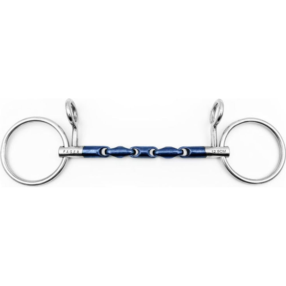 Fager’s designs are always designed to sit horizontally straight, never allowing a bigger forward bend. We design them this way to maintain the balance point (BP) in the mouth. A bigger bend forward moves the BP forward, slowing down the effectiveness of the aids. This design creates stability for the horse enabling clear communication. The unique design also protects the bars and mouth against cuts, sores, and rubs, even on sensitive horses.