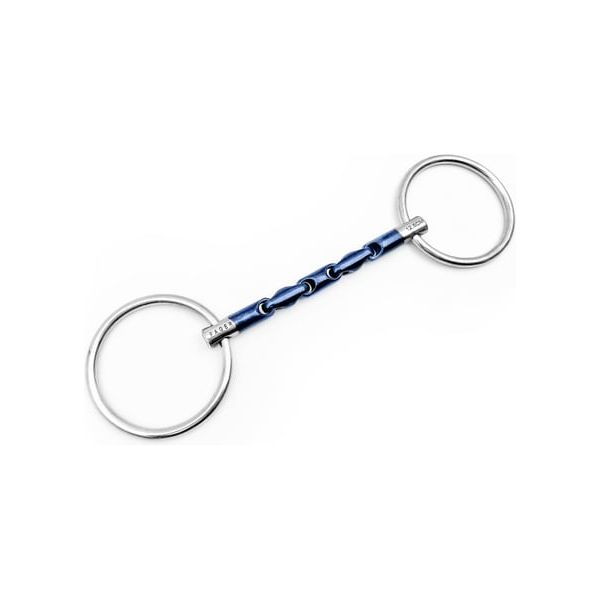 It is a flexible bit that molds around the horse’s mouth, creating even pressure. It is moveable in all directions which prevent the horse to lean or take hold of it, giving the rider a softer feeling in the hand.