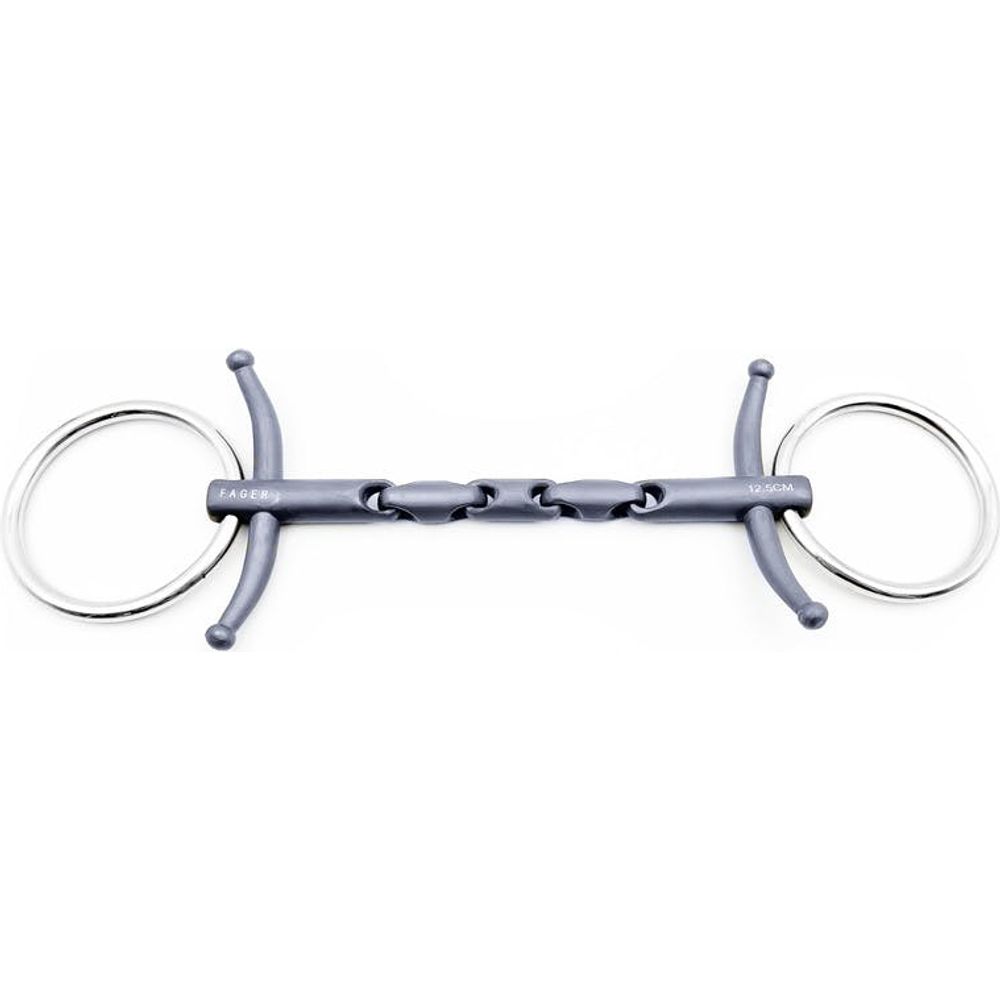 Fager’s designs are always designed to sit horizontally straight, never allowing a bigger forward bend. We design them this way to maintain the balance point (BP) in the mouth. A bigger bend forward moves the BP forward, slowing down the effectiveness of the aids. This design creates stability for the horse enabling clear communication. The unique design also protects the bars and mouth against cuts, sores, and rubs, even on sensitive horses.
