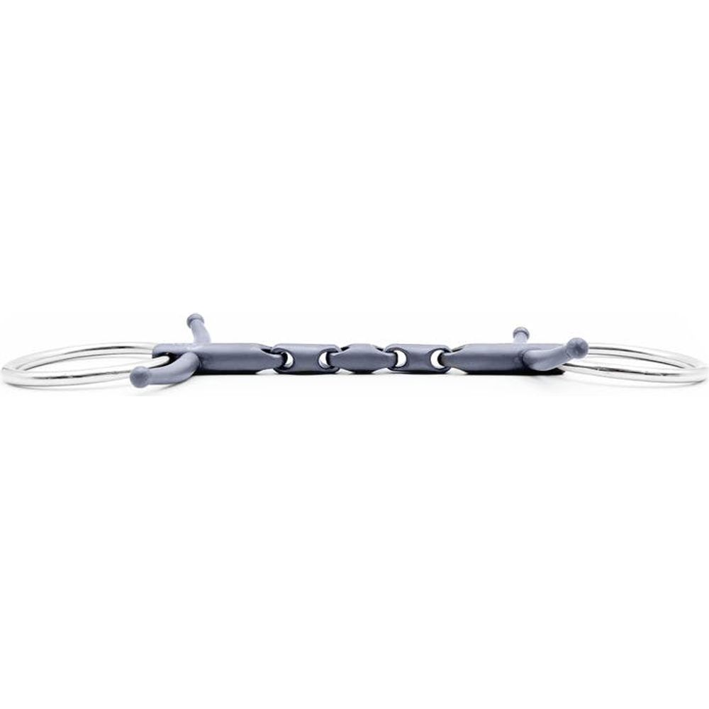 It is a flexible bit that molds around the horse’s mouth, creating even pressure. It is moveable in all directions which prevent the horse to lean or take hold of it, giving the rider a softer feeling in the hand.