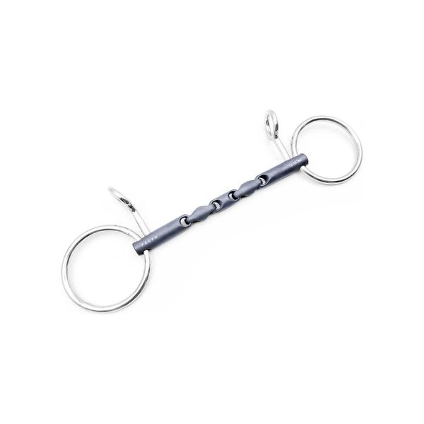 It is a flexible bit that molds around the horse’s mouth, creating even pressure. It is moveable in all directions which prevent the horse to lean or take hold of it, giving the rider a softer feeling in the hand.