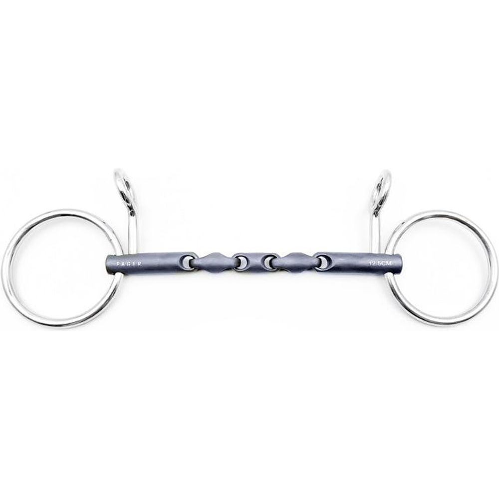 Fager’s designs are always designed to sit horizontally straight, never allowing a bigger forward bend. We design them this way to maintain the balance point (BP) in the mouth. A bigger bend forward moves the BP forward, slowing down the effectiveness of the aids. This design creates stability for the horse enabling clear communication. The unique design also protects the bars and mouth against cuts, sores, and rubs, even on sensitive horses.