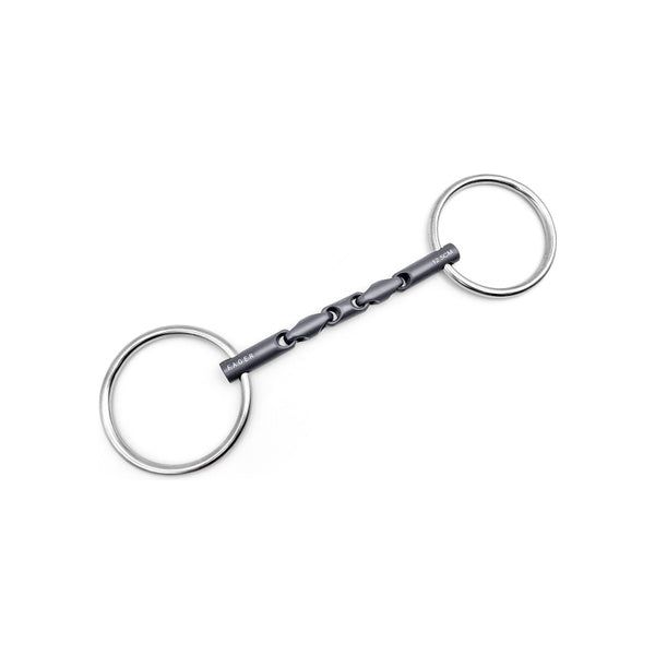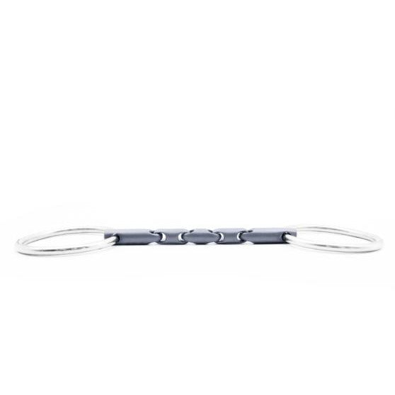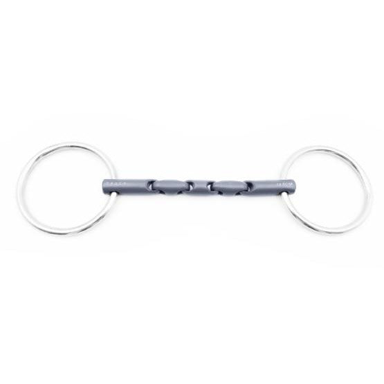 It is a flexible bit that moulds round the horses mouth, creating an even pressure. It is moveable in all directions which prevents the horse to lean or take hold of it, giving the rider a softer feeling in the hand.